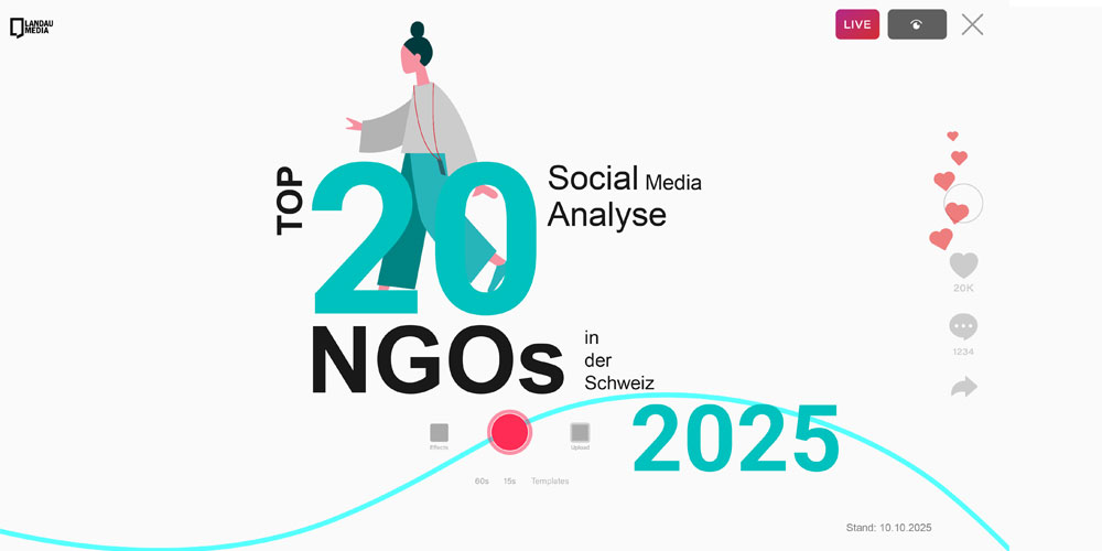 Social Media bleibt 2025 das zentrale Kommunikationsinstrument für die reputationsstärksten Schweizer NGOs. Das zeigt die neue Analyse «Top 20 Schweizer NGOs auf Social Media 2025» der Landau Media Schweiz AG. Ausgewertet wurden zwischen dem 1. Januar und 30. September 2025 über 6’600 Beiträge von 77 Social-Media-Profilen der Top-20-NGOs gemäss GfK Business Reflector. Die Studie zeigt […]